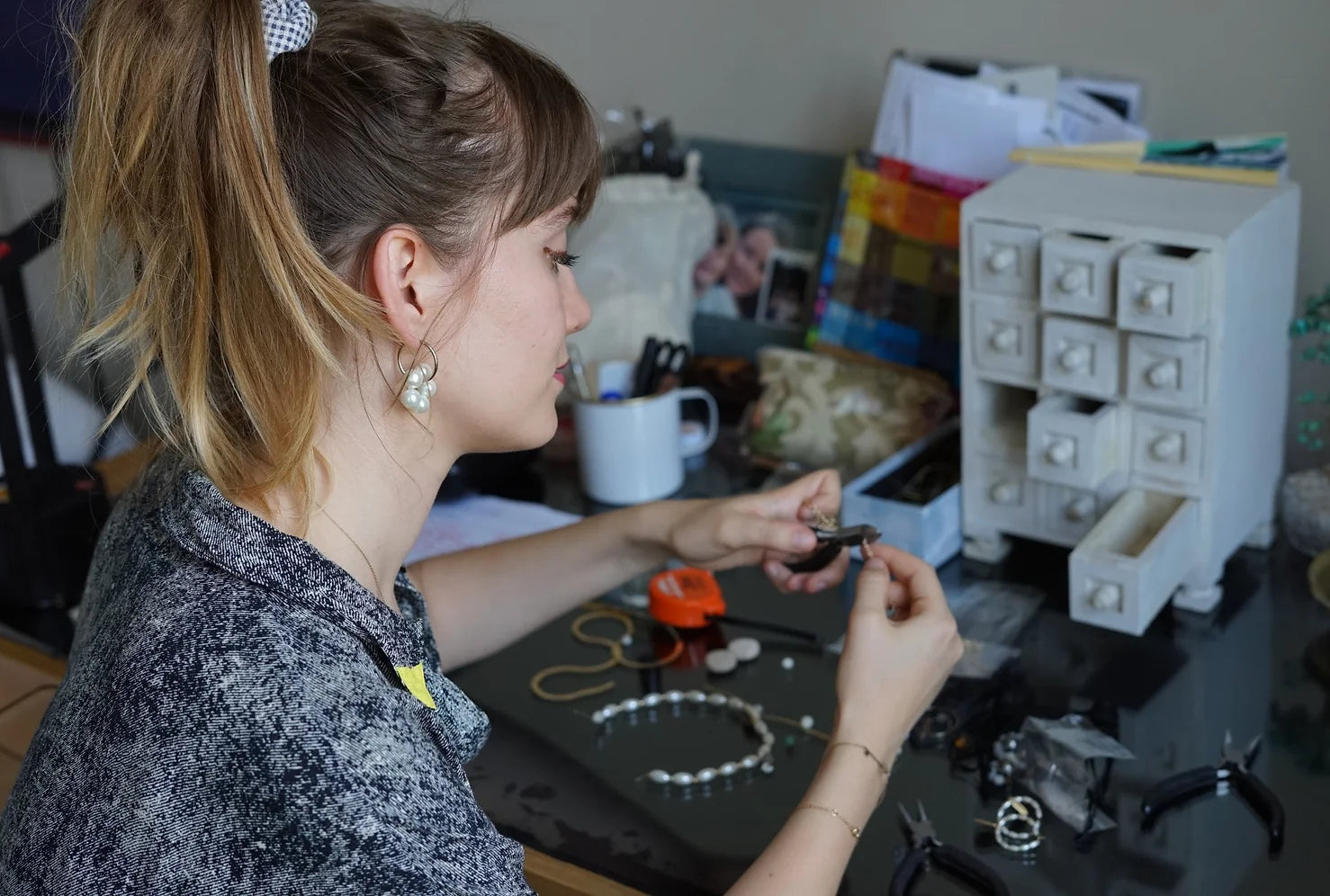 Nous nettoyons et désinfections toutes les pièces chinées. Puis nous les désassemblons, les remixons et les convertissons en pièces uniques. Nous leur redonnons donc une seconde vie en créant de nouveaux bijoux dans l'air du temps. D'une pierre deux coups, nous créons des bijoux uniques et écoresponsables. Tous les bijoux sont créés à la main dans notre atelier à Strasbourg.